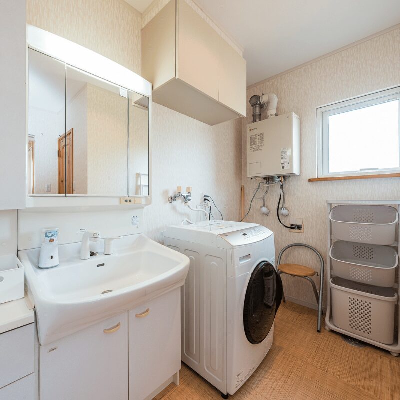 115㎡の広さがあり、最大9名まで宿泊可能です。Wi-Fiやキッチン、洗濯機など完備で長期滞在にも便利。